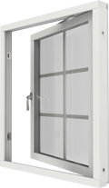 Elitfönster Original Alu 100 i sidhängd modell är ett klassiskt fönster med gångjärn längs ena sidan som öppnas utåt. Erbjuds även som flerluft och i kombinationer.