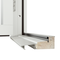 Original Alu Altan- och Fönsterdörr erbjuds med tre tröskelalternativ, här visas den högsta varianten. Tröskel i trä med utvändig del av aluminium, höjd 42 mm.
