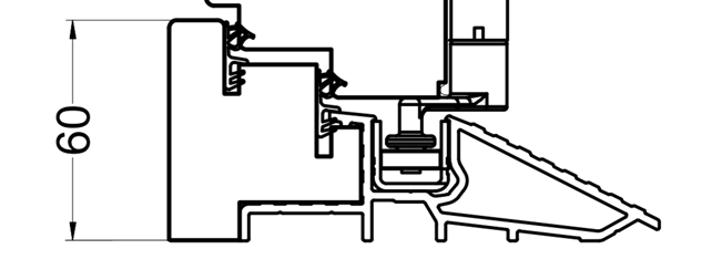 Vikdörren erbjuds med tröskelalternativet som visas på bilden. Tröskel i trä med utvändig del av aluminium, höjd 60 mm.